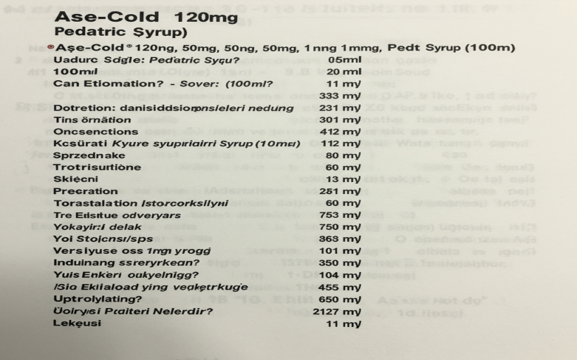 Ase-Cold 120 Mg + 50 Mg + 1 Mg / 5 Ml Pediatrik Surup (100 Ml) Hakkında Genel Bilgiler Ase-Cold, çocukların soğuk algınlığı ve alerjik belirtilerini hafifletmek amacıyla kullanılan bir pediatrik şuruptur. İçeriğinde bulunan etkin maddeler, burun tıkanıklığı, hapşırma, kaşıntı ve öksürük gibi semptomların giderilmesine yardımcı olur. Genellikle, bu tür ilaçlar, çocukların bağışıklık sisteminin güçlenmesine destek olmak ve semptomlarının daha rahat geçmesini sağlamak amacıyla kullanılır. İçerik ve Etkin Maddeler Ase-Cold şurubu, aşağıdaki etkin maddeleri içermektedir: